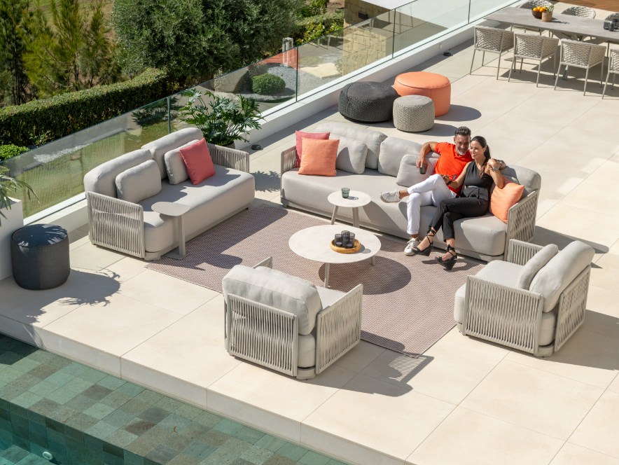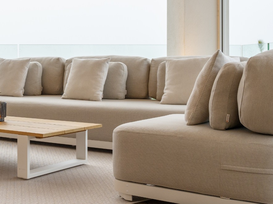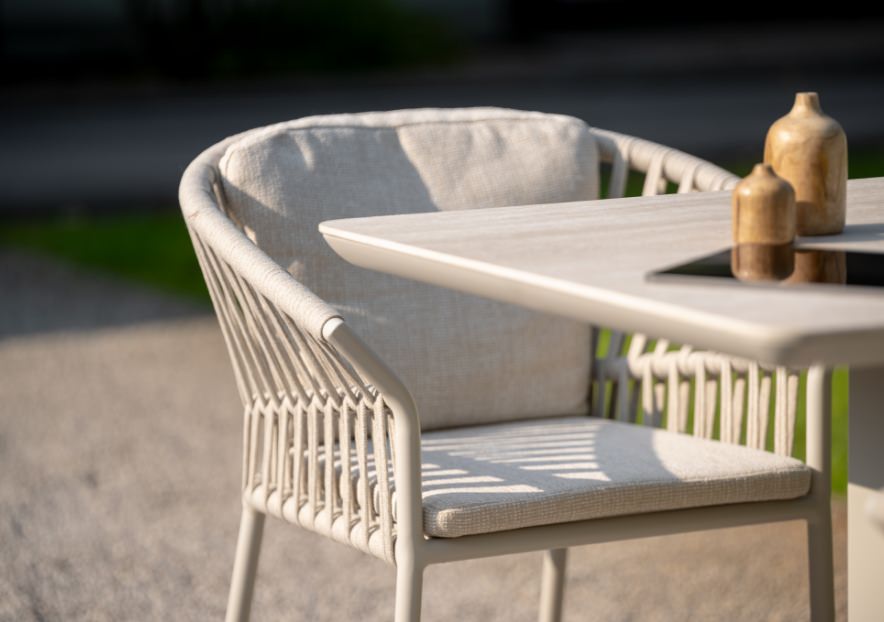 雨や日差しに強い速乾クッションが、外でのくつろぎをより身近なものに。 手入れの時間を減らし、大切な人とゆったり過ごすための時間を生み出します。