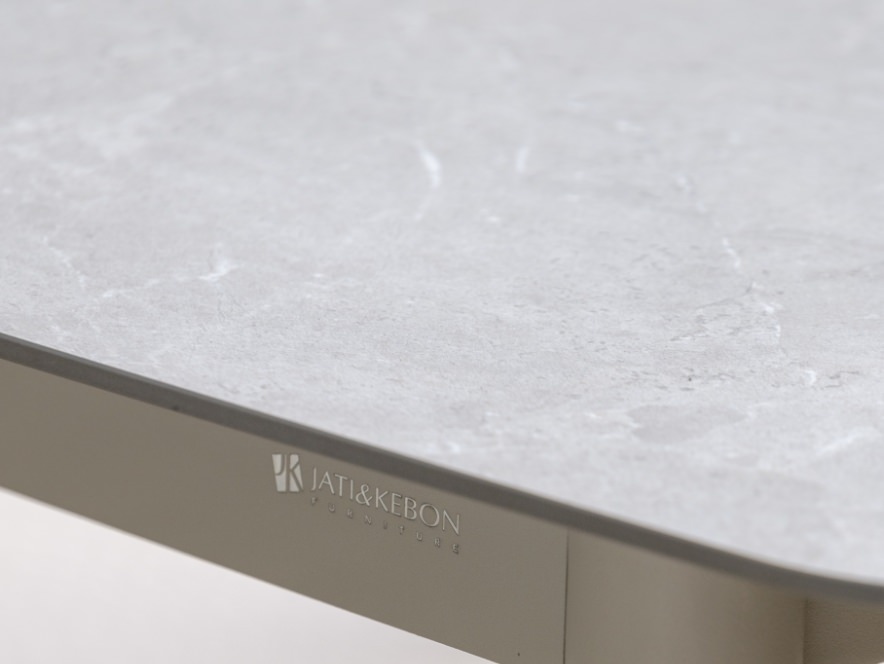 セラミック製のテーブルトップは、大理石のような美しさと手軽なお手入れを両立。高い技術性能と薄さを活かし、多様なテーブルに適しています。